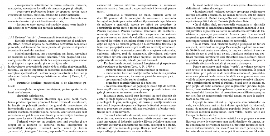 1.6 Dezvoltarea durabilă pentru practicarea turismului în parcurile naţionale şi