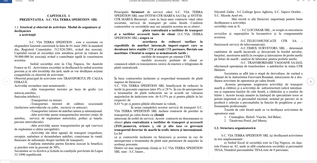 CAPITOLUL 1. PREZENTAREA S.C. VIATERRA SPEDITION SRL