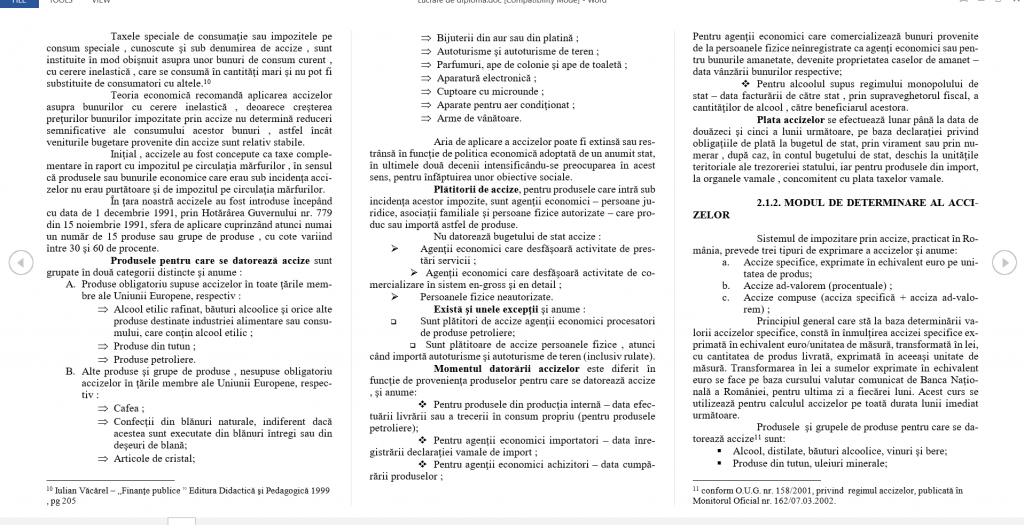 2.1.4. Evoluţia sistemului de impozitare prin accize; … pg.18