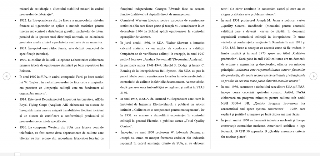 • În anul 1951 profesorul Joseph M. Juran a publicat cartea „Quality Control Handbook” (Manualul pentru controlul calităţii) care a devenit cartea de căpătâi în domeniul organizării controlului calităţii în întreprindere. În urma vizitelor şi conferinţelor susţinute în România în anii 1971 şi 1972, J.M. Juran a acceptat ca această carte să fie tradusă în limba română şi în anul 1973 apare sub titlul „Calitatea produselor”. Dacă până în anii 1960 calitatea era un domeniu de acţiune a inginerilor şi directorilor, ulterior s-a introdus principiul „calitatea este responsabilitatea tuturor factorilor din producţie, din toate sectoarele de activitate şi că defectele se produc în cea mai mare parte datorită erorilor umane”.