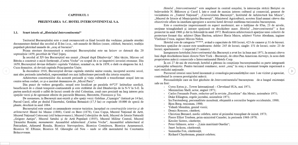 CAPITOLUL 1 - PREZENTAREA S.C. HOTEL INTERCONTINENTAL S.A.