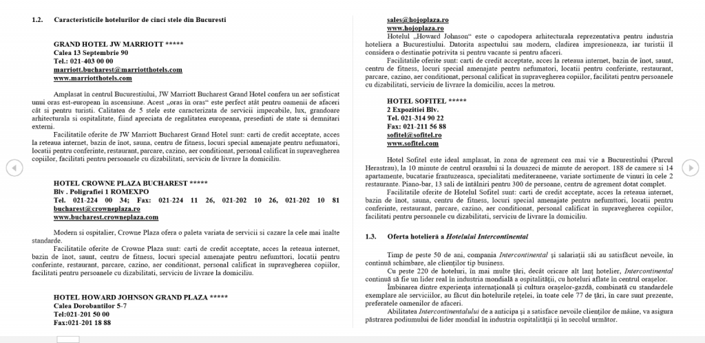 1.2. Caracteristicile hotelurilor de cinci stele din Bucuresti