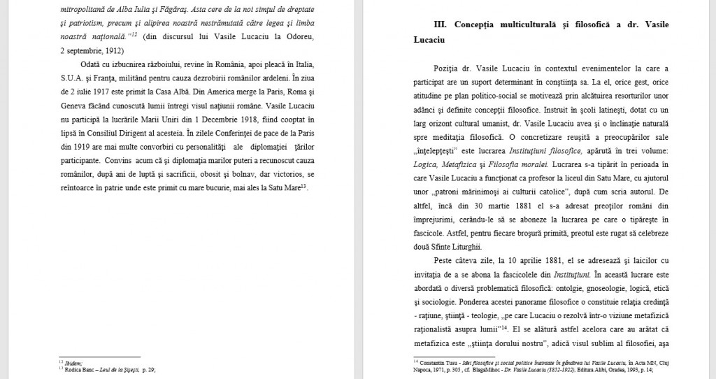 Oare ideea de multiculturalitate i-a fost străină? O percepem şi din acestă lucrare într-o mică măsură. Un studiu mai aprofundat al ideii de multiculturalitate la Vasile Lucaciu ar putea descoperi o parte mai mică dintr-un fundament al viitoarei comunităţi europene. Frământarea istoriei încă ni-l descoperă.