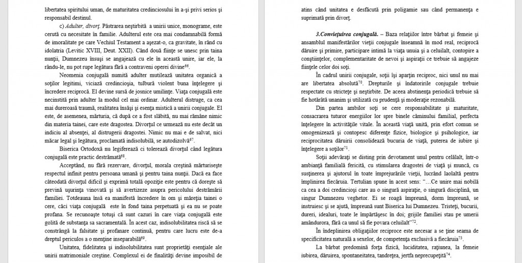 a) Dragoste conjugală. Familia este o comuniune voită, liber consimţită, necesară, ce descoperă credinciosului profunzimea originală a naturii sale, consubstanţialitatea aproapelui său absolut, a complementarului său . Pentru ca ea să aibă şanse de durată, pentru a nu degenera în suferinţă trebuie ca pivotul ei să fie dragostea, reciproc împărtăşită .