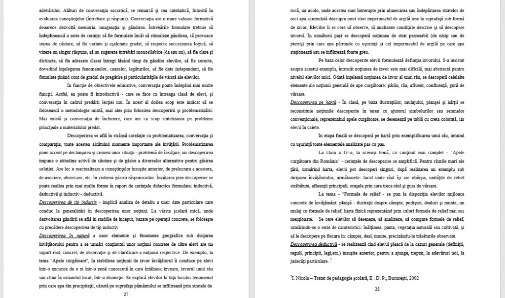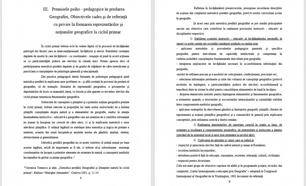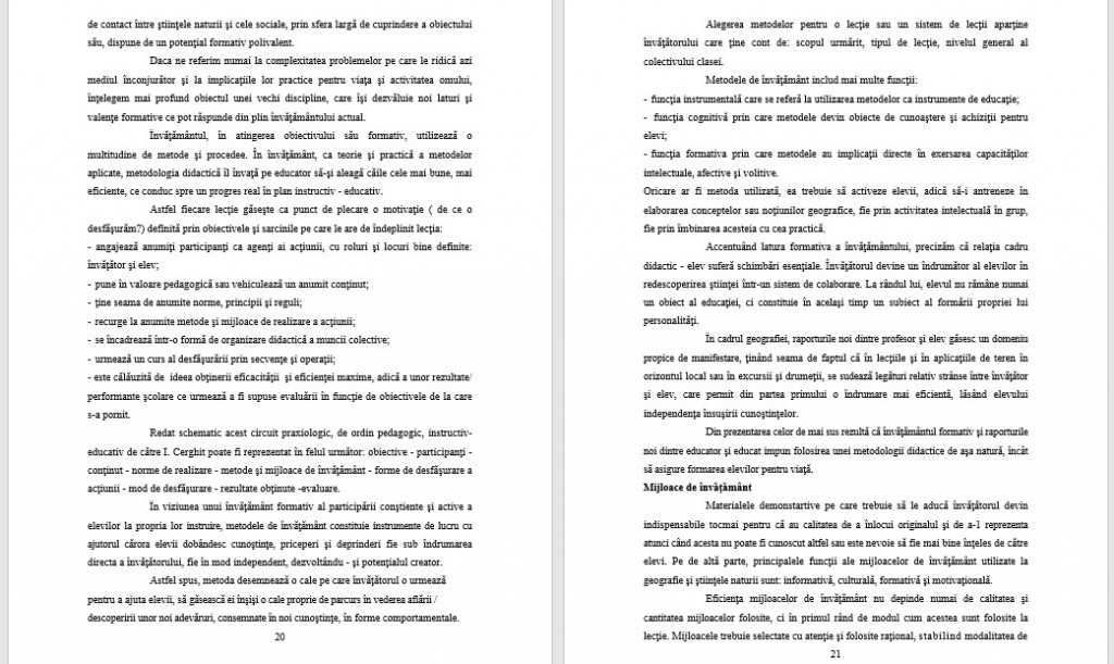 -studierea trecutului nostru în domeniul predării geografiei, precum şi a experienţei înaintate din alte ţări. Se impune deci o permanentă documentare ştiinţifică care să conducă la cunoaşterea a tot ce a fost valoros în trecut şi a ceea ce este nou în domeniul predării geografiei şi al disciplinei de specialitate;