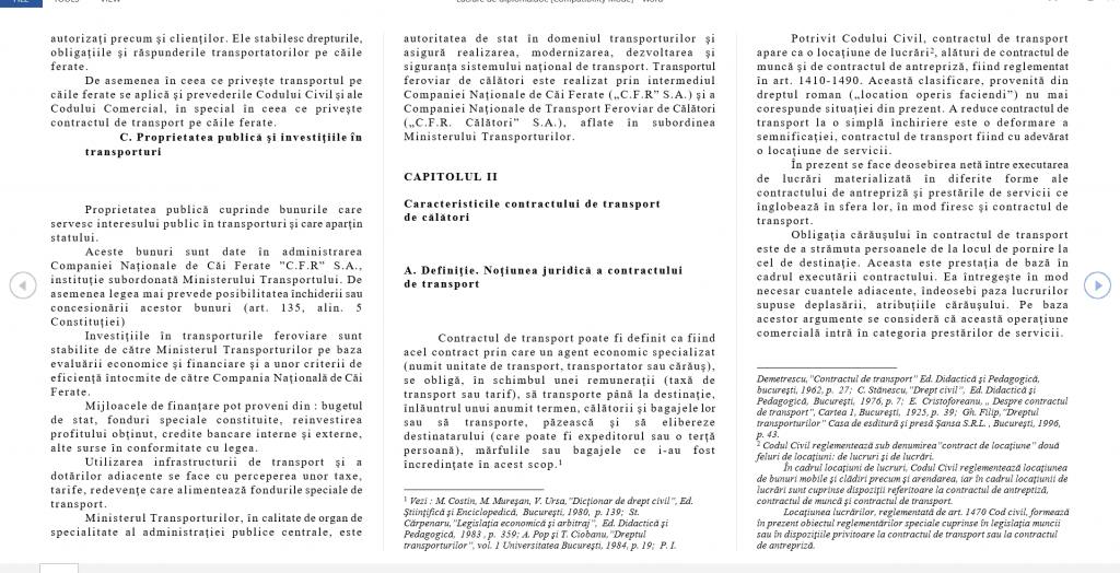 B. Regimul juridic al transporturilor în România ............. pag. 8