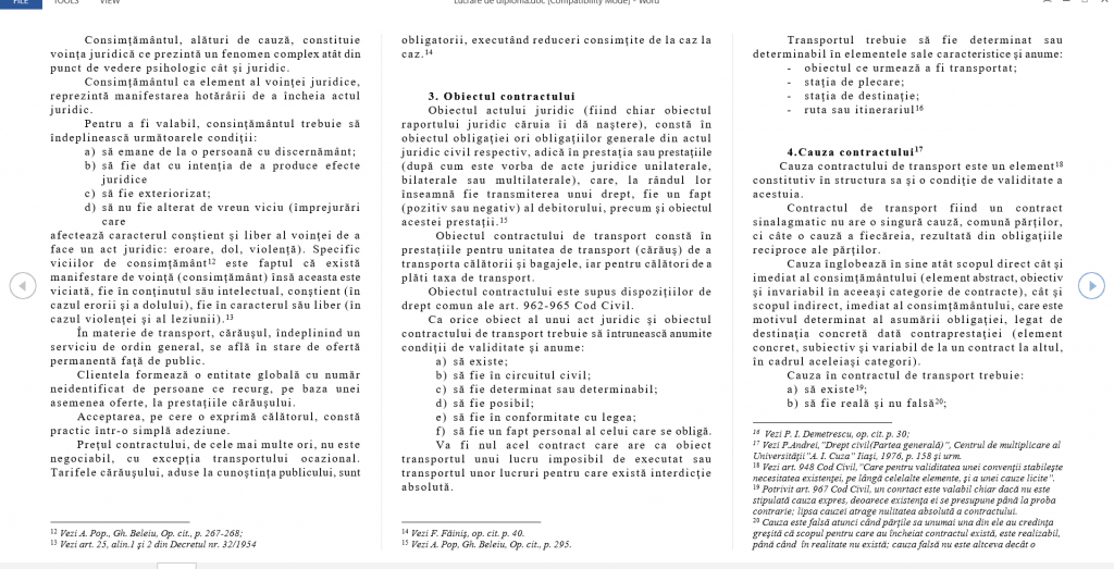 B. Caracterele juridice ale contractului de transport …………. pag. l2