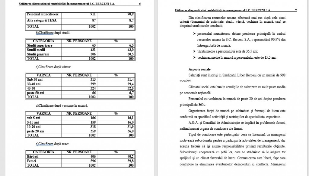 Din clasificarea resurselor umane efectuată mai sus după cele cinci criterii (domeniul de activitate, studii, vârstă, vechime în muncă, sex) se desprind următoarele concluzii: