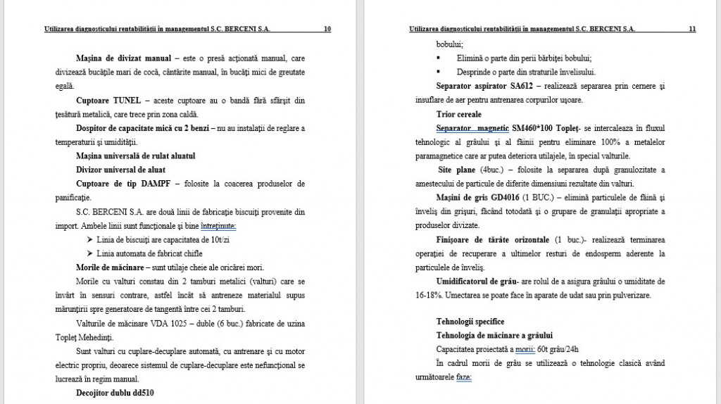 S.C. BERCENI S.A. are două linii de fabricaţie biscuiţi provenite din import. Ambele linii sunt funcţionale şi bine întreţinute: