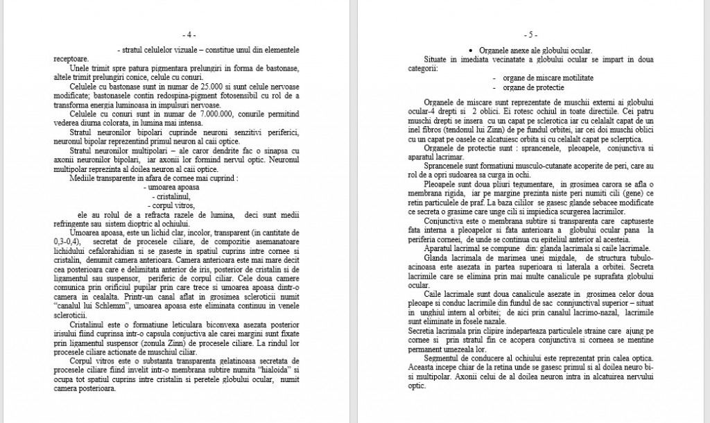 - stratul celulelor vizuale – constitue unul din elementele receptoare.