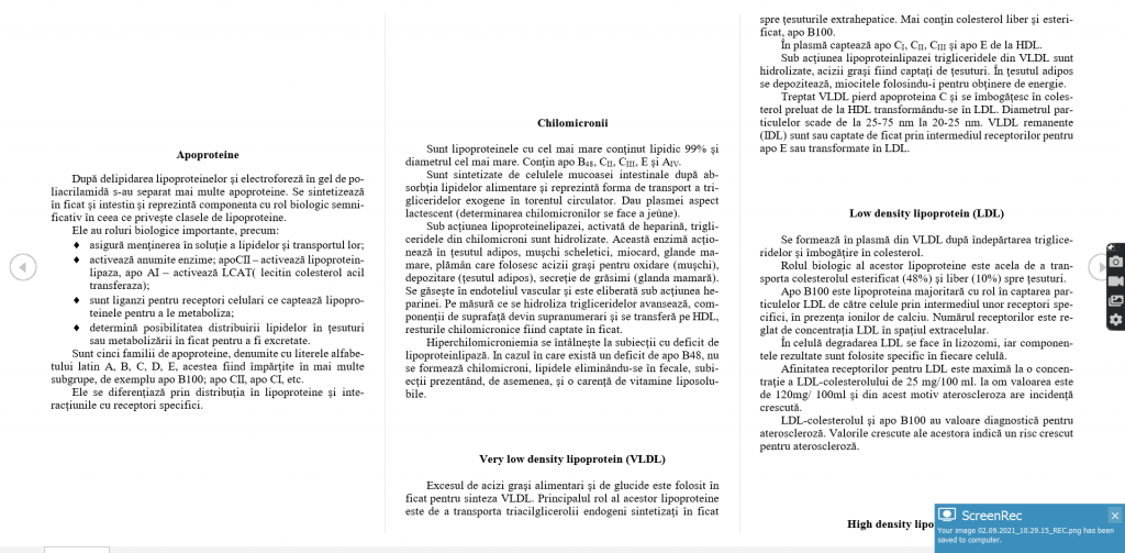 4. Transportul lipidelor absorbite din intestin în torentul circulator sub formă de chilomicroni, particule lipoproteice de dimensiuni mari, bogate în lipide (99%) care dau plasmei un aspect lactescent. În ţesuturi, grăsimile din chilomicroni sunt hidrolizate de lipoprotein lipază, produşii de hidroliză captaţi în ţesuturi, chilomicronii devenind resturi chilomicronice care sunt metabolizate.