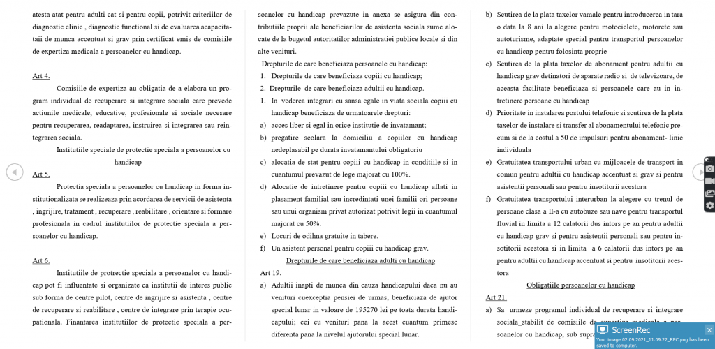 Drepturile de care beneficiaza persoanele cu handicap: