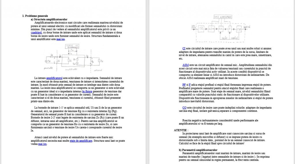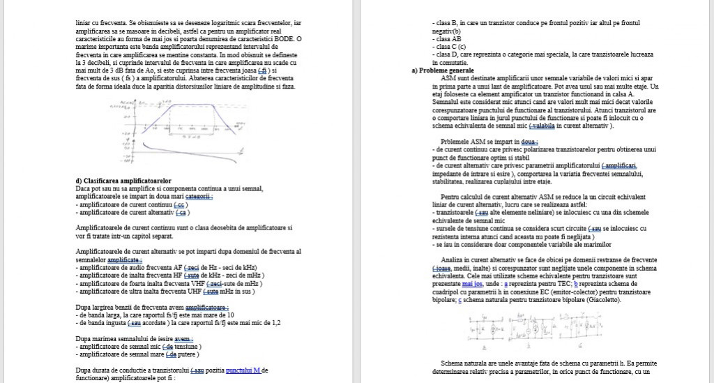 - de curent alternativ care privesc parametrii amplificatorului ( amplificari, impedante de intrare si esire ), comportarea la variatia frecventei semnalului, stabilitatea, realizarea cuplajului intre etaje.