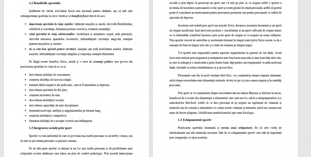 • rolul sportului în viața adolescenților: modelează și menținere corpul, arde grăsimile, dezvoltă armonios aparatului locomotor, îmbunătățește circulația sangvină, menține puterea mușchilor și oaselor;