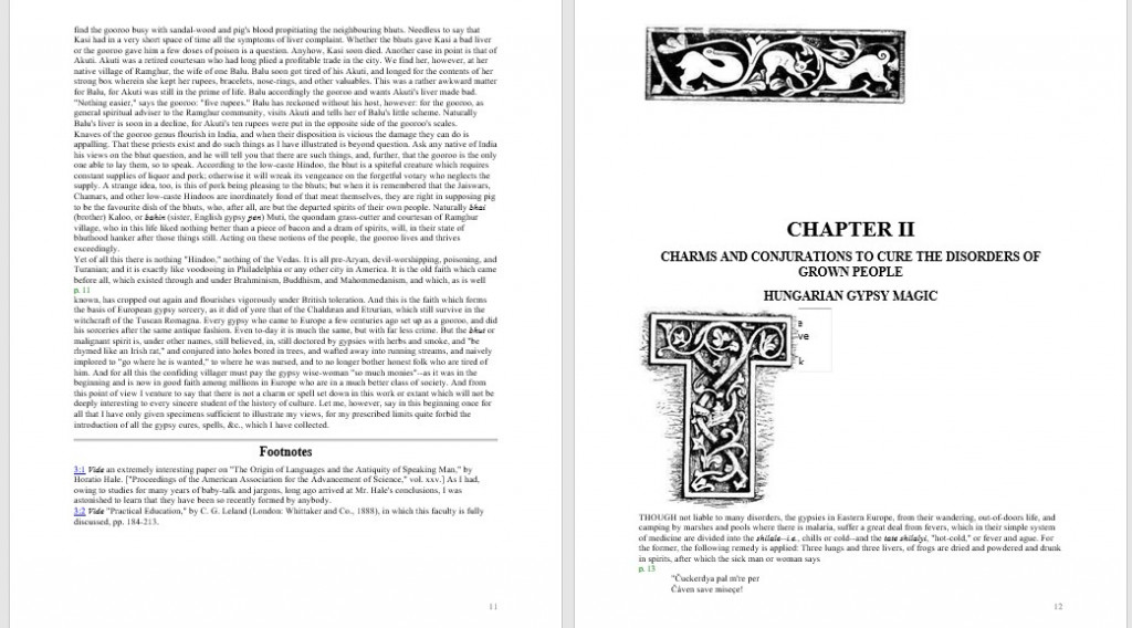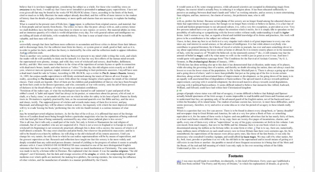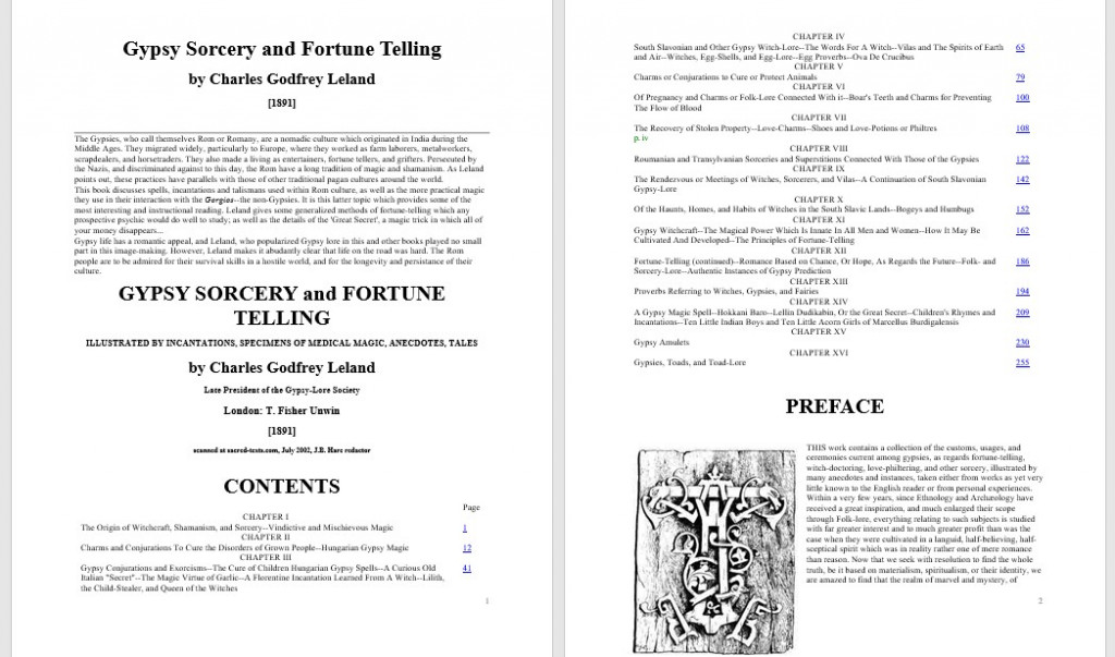 In a paper read before the Congrès des Traditions populaires in Paris, 1889, on the relations of gypsies to Folk-lore, I set forth my belief that these people have always been the humble priests of what is really the practical religion of all peasants and poor people; that is their magical ceremonies and medicine. Very few have any conception of the degree to which gypsies have been the colporteurs of what in Italy is called "the old faith," or witchcraft.