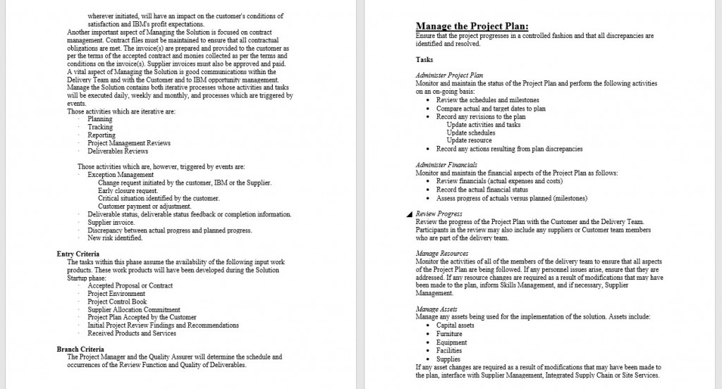 · Project Plan Management Activities: Tracking progress, ensuring commitments are met and reporting to IBM management and the Customer.